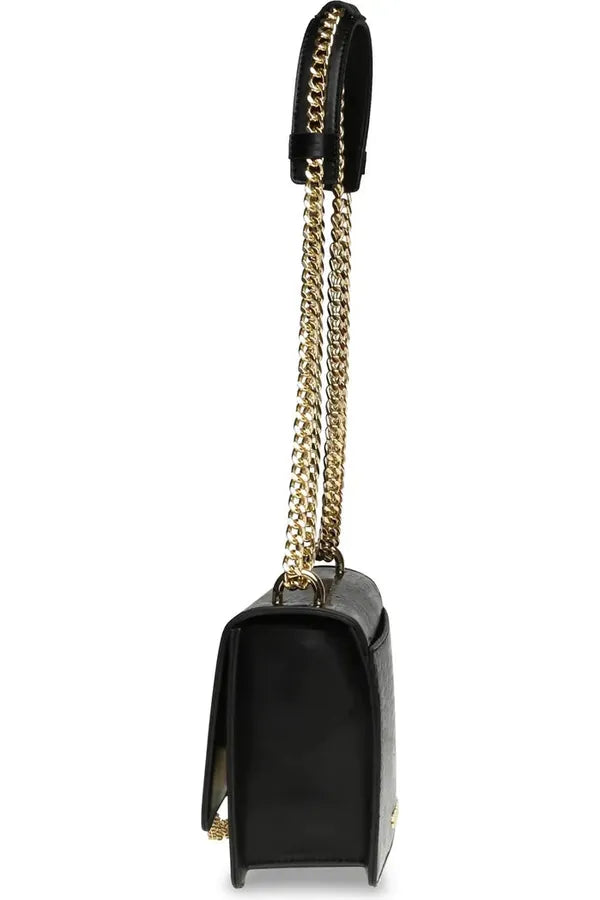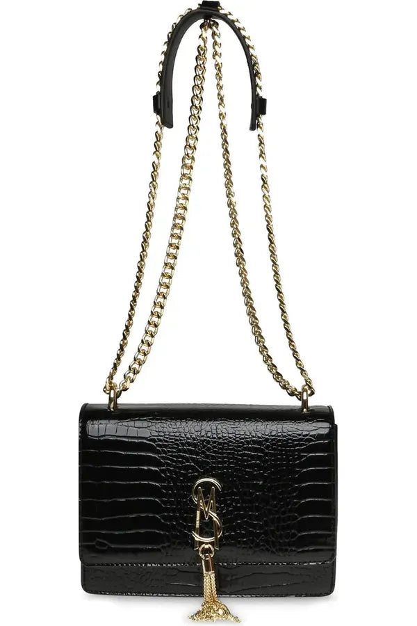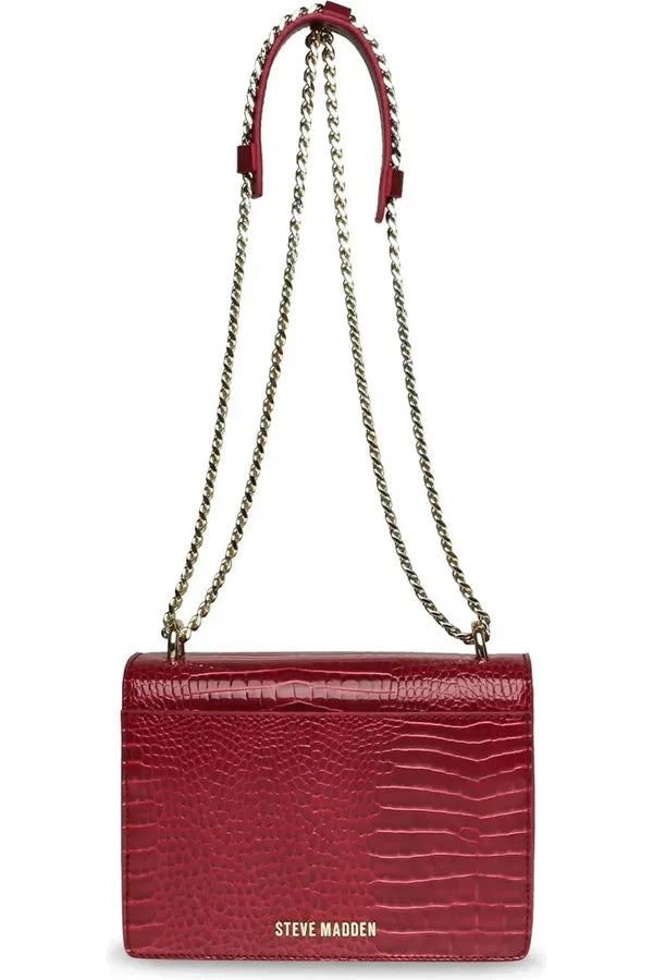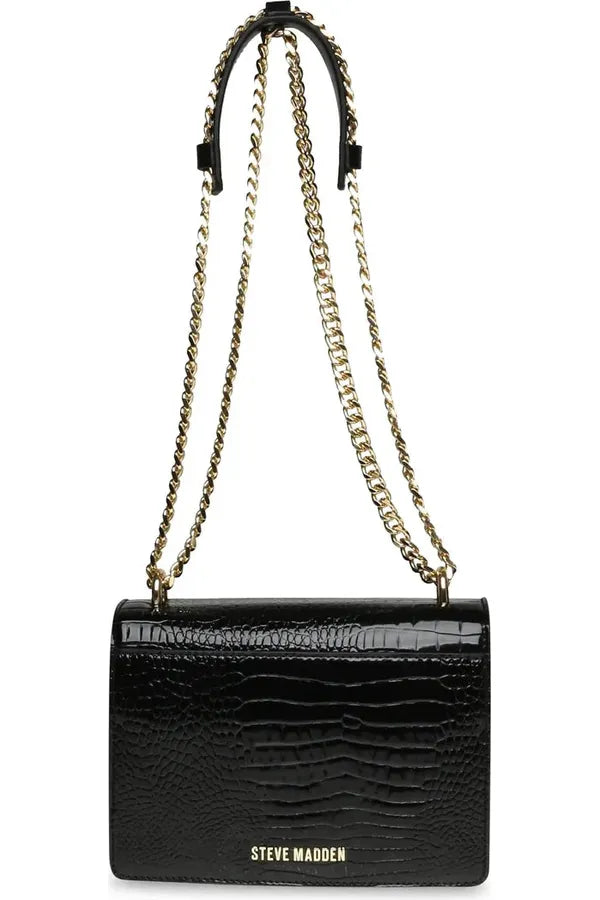 Bolso de piel sintética, imitación piel cocodrilo. Correa con cadena. Cierre metalizado con solapa delantera. Medidas: 15 x 20 x 8 cm
