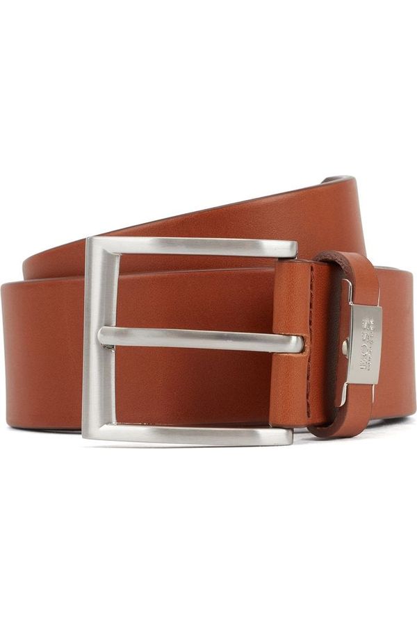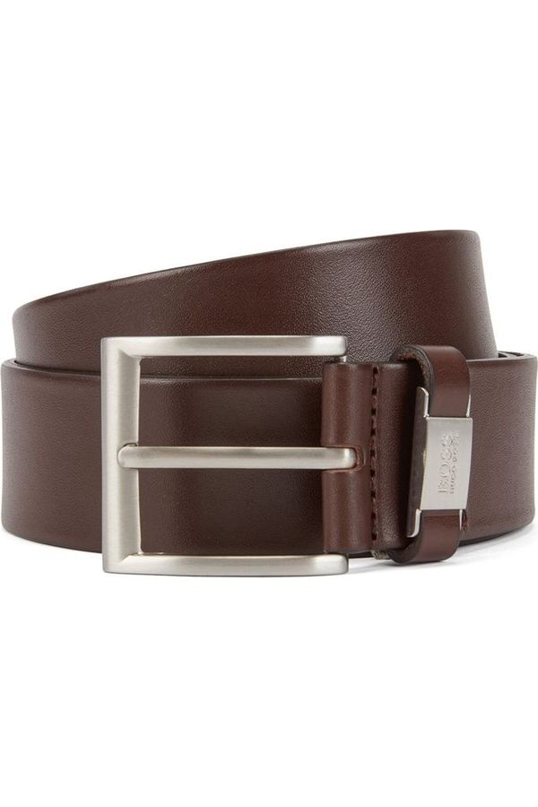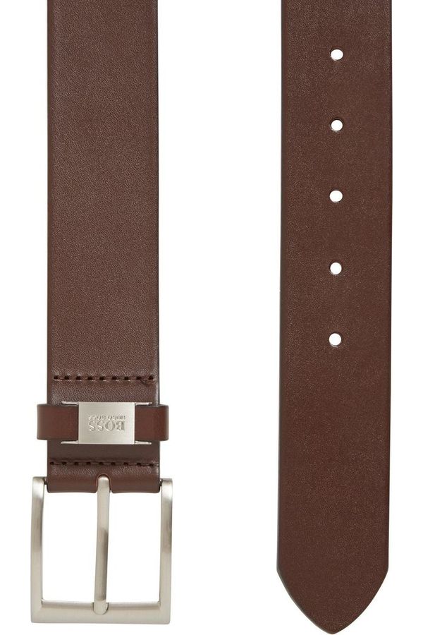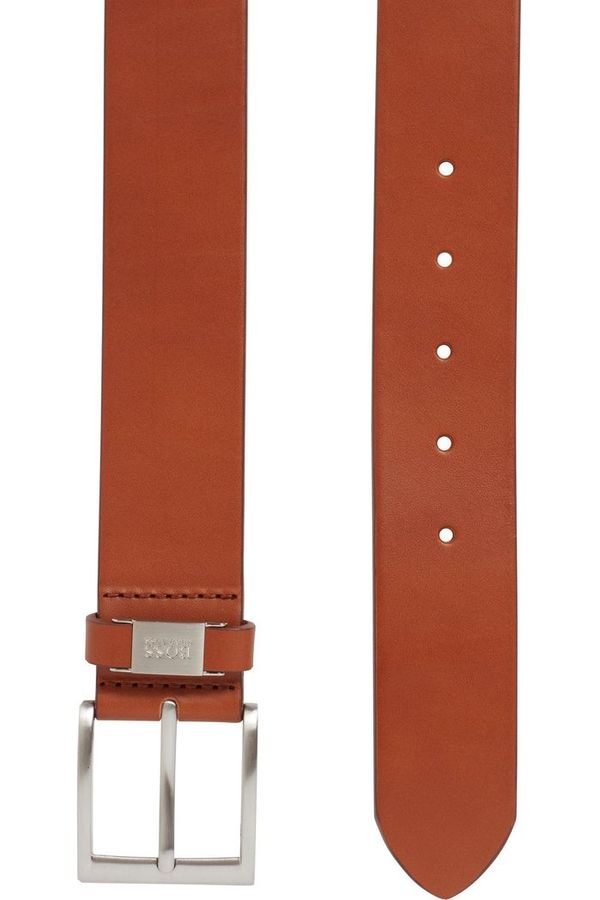 Un moderno cinturón de BOSS, elaborado en piel italiana con un acabado de curtido vegetal que le aporta carácter. Este cinturón casual de 4 cm de ancho se cierra con una hebilla metálica cepillada y una trabilla de piel con detalle de metal que presenta un logo grabado. Llévelo con unos vaqueros o unos chinos para darles un toque discreto de elegancia.