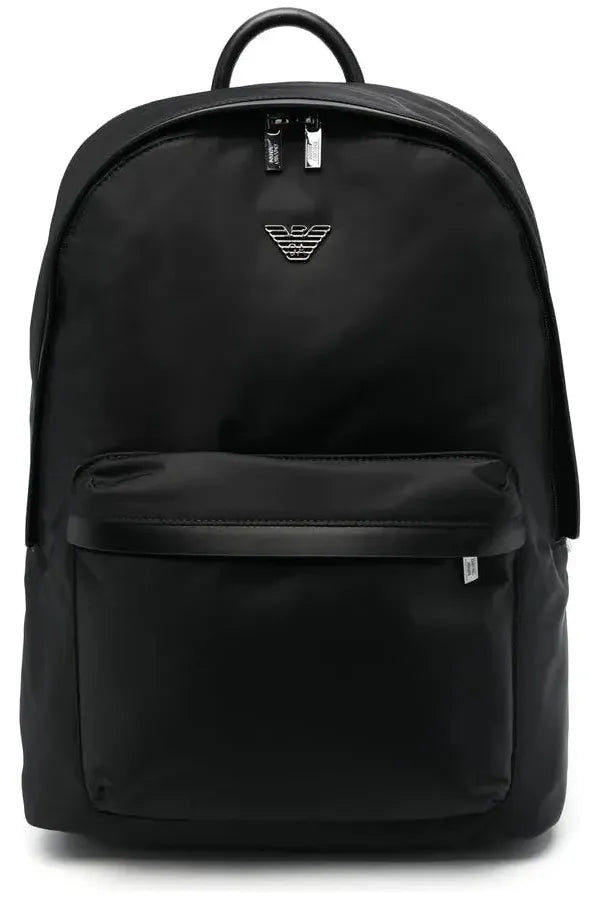 Negro carbón, nylon reciclado, placa del logo, cierre con cremallera en el tope, bolsillo con cremallera en la parte delantera, acabado en tono plateado, asa en la parte superior, correas de hombro ajustables, bolsillo interno con cremallera y bolsillo de parche en el interior.