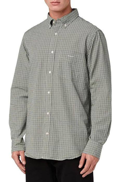 El diseño de cuadros de la camisa, con fuertes contrastes de color crea un patrón elegante. Confeccionada en tejido 100% algodón, corte regular. El famoso logo de Gant está bordado en el bolsillo del pecho.