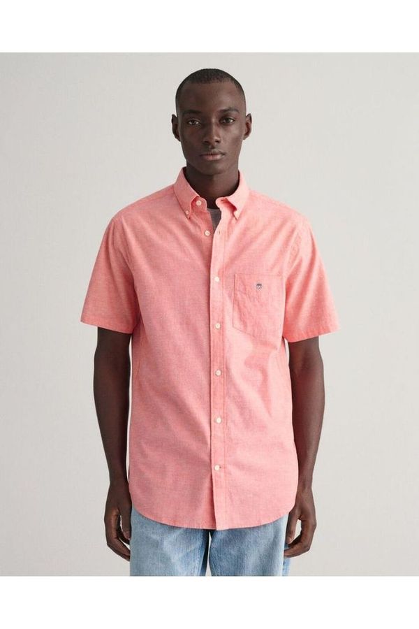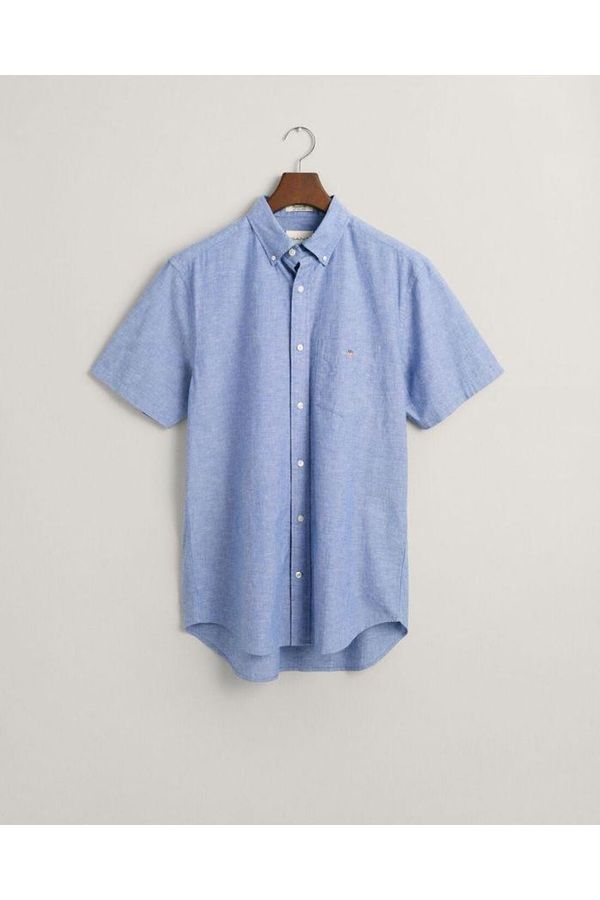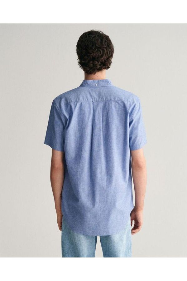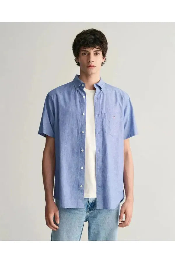 Esta camisa de corte normal, confeccionada en una mezcla impecable de lino y algodón, es ligera, transpirable y vaporosa. Se ha diseñado con corte normal y manga corta para los meses más cálidos del verano. Cuenta con cuello abotonado, bajo curvado, bolsillo en el pecho con la insignia bordada y fuelle con trabilla en la espalda. Está pensada para un uso diario y la puedes combinar con vaqueros, pantalones chinos y pantalones cortos indistintamente.