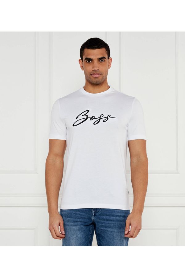 Una camiseta BOSS Hombre muy cómoda elaborada en punto de algodón. Esta prenda se presenta con corte recto y detalle de logo caligrafiado en el pecho.