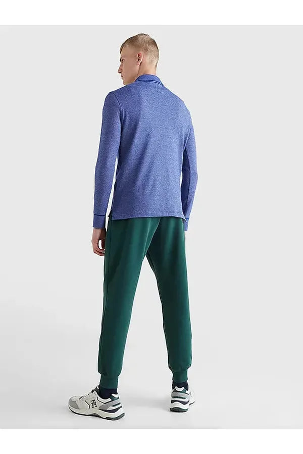 Este cálido polo de algodón mouliné, ideal para los días fríos, presenta mangas largas ribeteadas en un discreto color tonal.