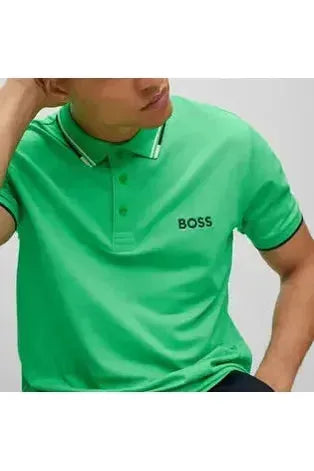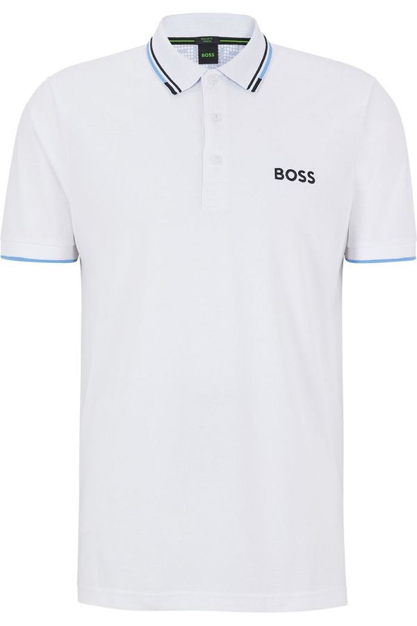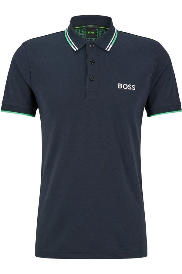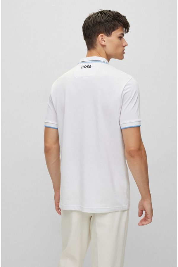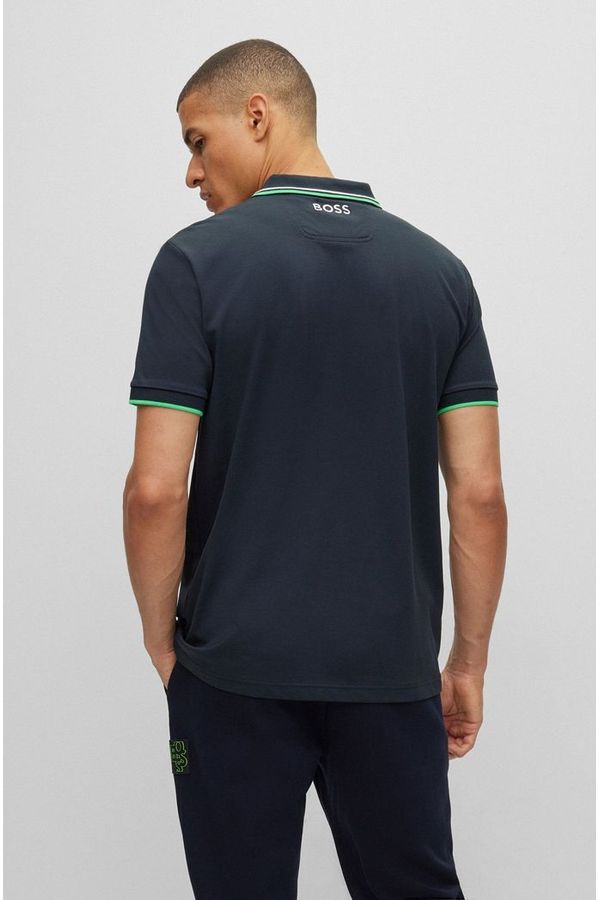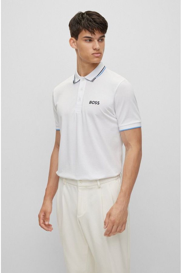 Un polo de golf exclusivo BOSS Hombre. Este polo regular fit de manga corta presenta un detalle de la marca en contraste en la nuca y en la parte izquierda del pecho, y está confeccionado en piqué de mezcla de algodón con elástico para facilitar el movimiento. El cuello y los puños vienen adornados con rayas en 3D que le confieren un acabado deportivo.