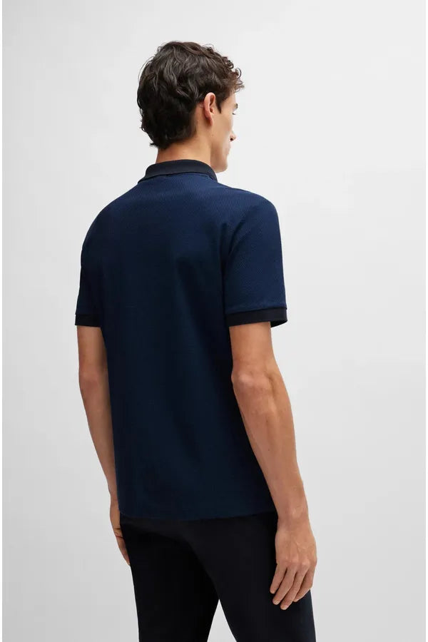 Un polo BOSS Hombre slim fit, elaborado con algodón mercerizado y tejido en estructura de malla que produce un efecto de dos tonos.