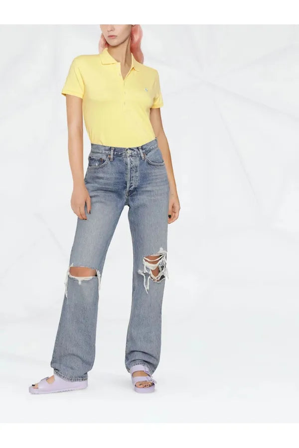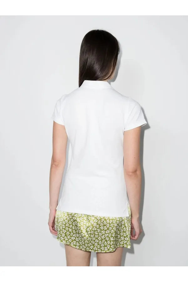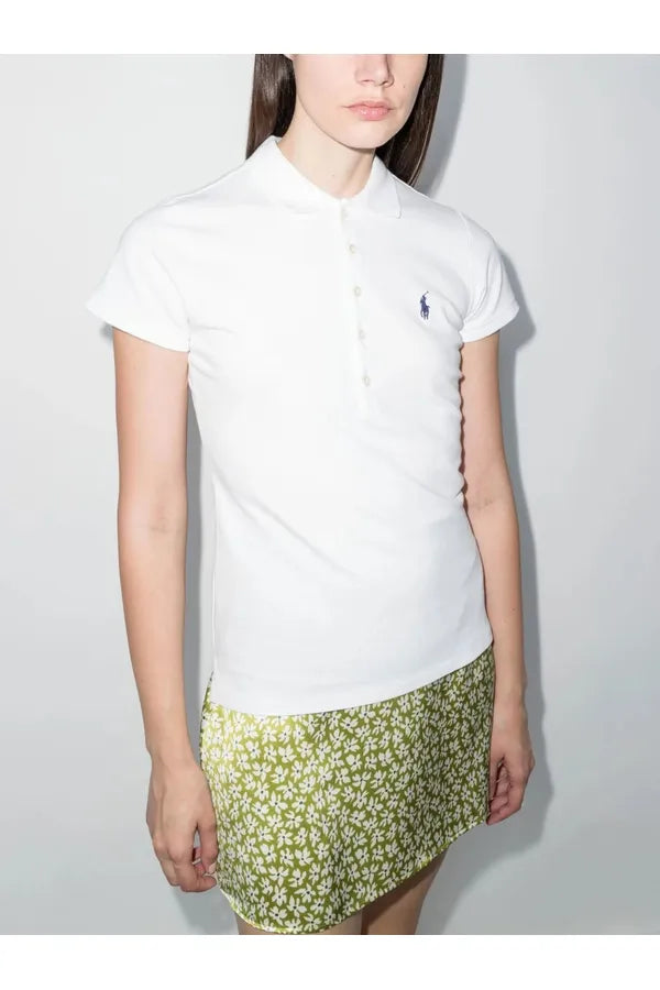 - Cuello de polo acanalado. Tapeta de cinco botones.