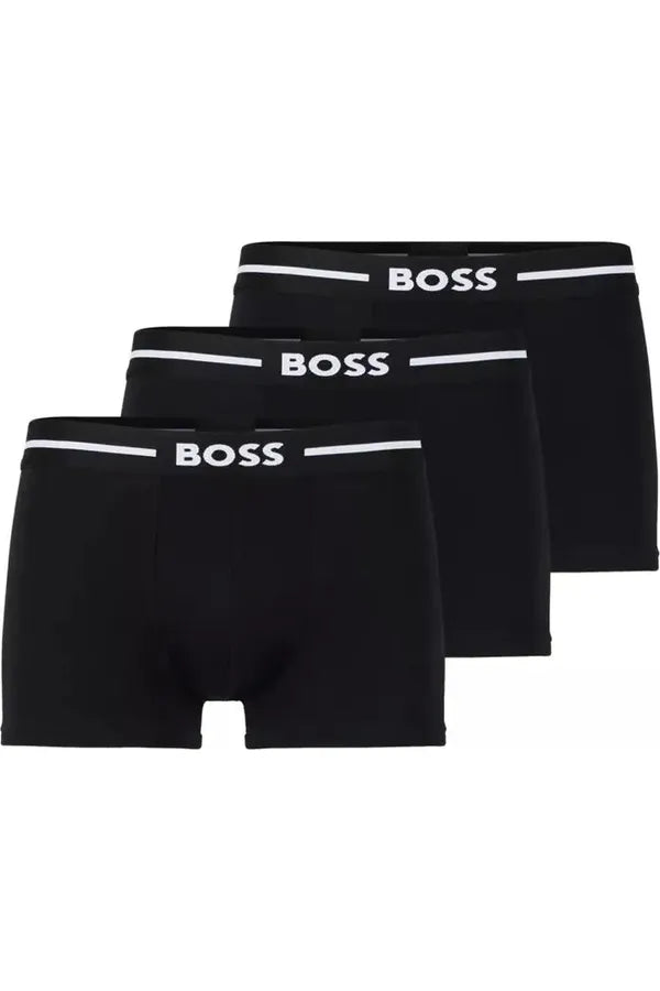 Tres calzoncillos bóxer BOSS muy cómodos. Estos calzoncillos se han elaborado en punto sencillo de mezcla de algodón con un toque de elástico y presentan una raya deportiva y un logo en contraste en la cintura a la vista. Cada prenda se presenta con un tiro medio muy cómodo para vestir a diario.