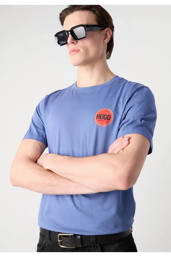 Esta camiseta HUGO Hombre de estilo cómodo tiene estampado un logo inspirado en las carreras, ideal para lucir un look deportivo el fin de semana. Regular fit. De punto suave y transpirable.