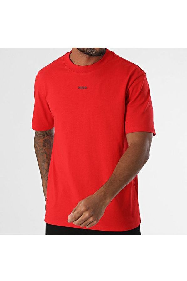 camiseta roja de HUGO. Pequeño logo engomado en el centro del pecho. Escote redondeado con puños de canalé. Confeccionado en 100% Algodón. Ajuste relajado.