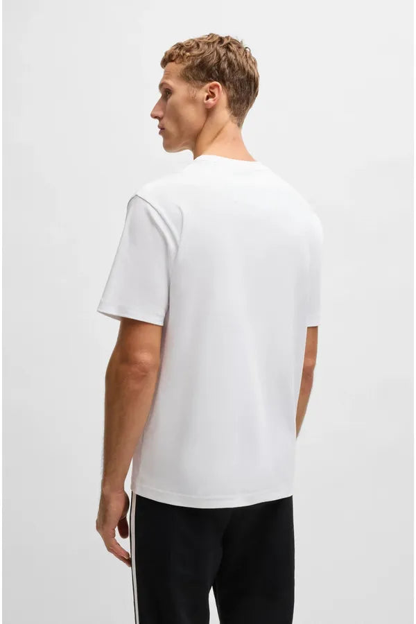 Esta camiseta BOSS Hombre con logo e ilustración tonales es una prenda casual moderna. Diseñada con un corte holgado en punto especialmente suave.