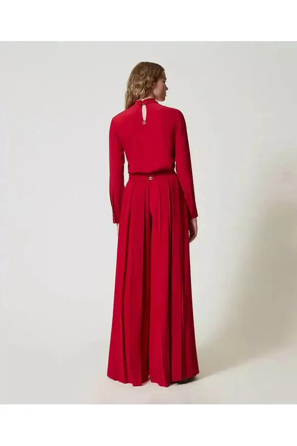 Pantalones de crepé con plisado plano superpuesto y planchado hasta el bajo. Tiene cierre de cremallera en el lateral y corte de pernera ancha. Estos pantalones elegantes son perfectos para una ocasión especial