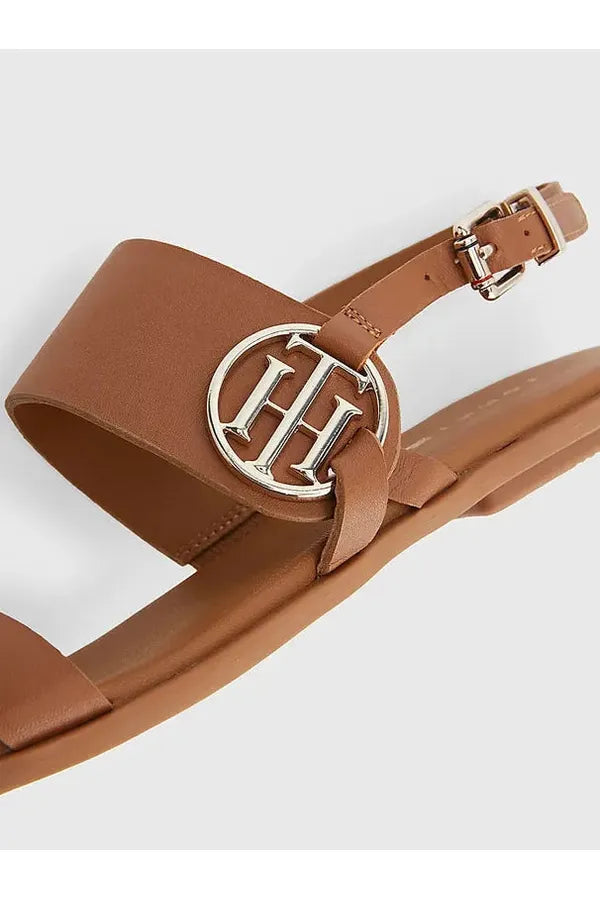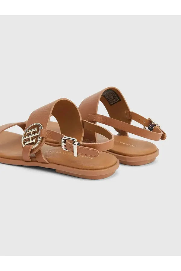 Estas discretas sandalias planas, confeccionadas en piel suave, se realzan con una insignia del monograma TH en la tira.