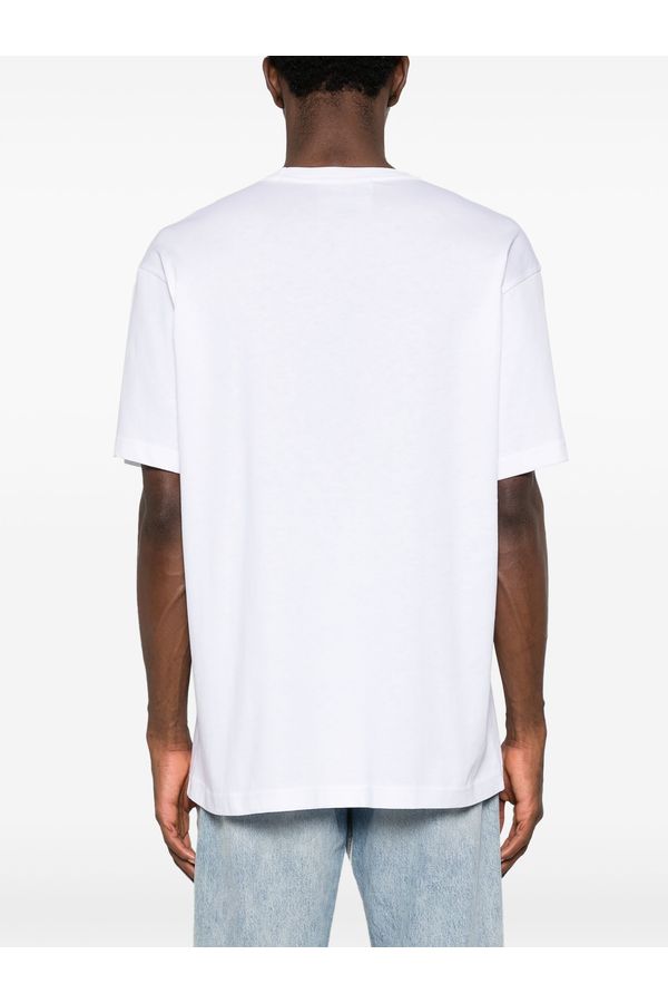 Blanco, algodón, estampado del logo en la parte delantera, cuello redondo, manga corta y dobladillo recto.
