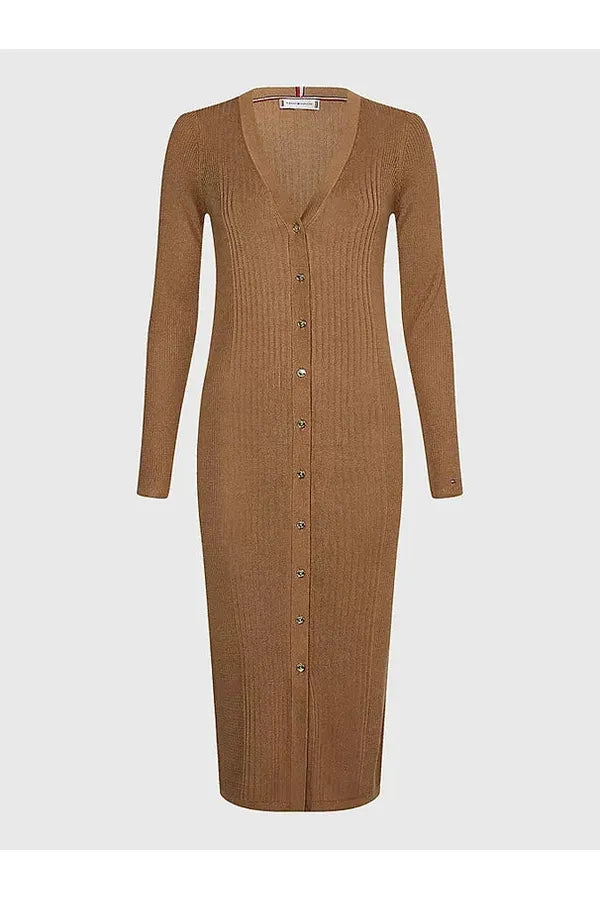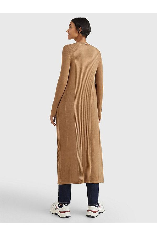 Este cárdigan de punto, de un elegante corte largo, presenta botones dorados y una textura ultrasedosa.