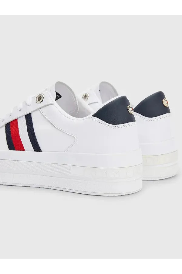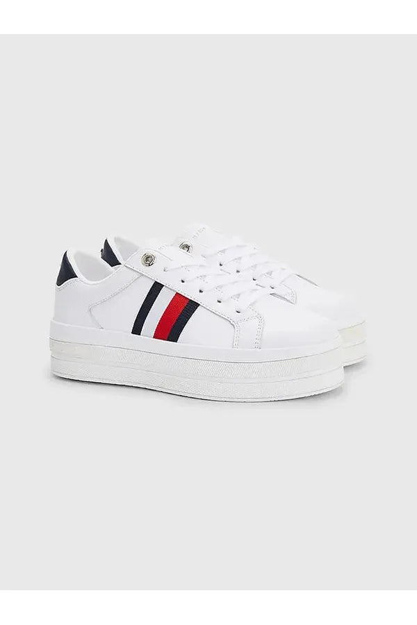 Estas zapatillas deportivas de piel mixta, ideales para dar un aire refinado a los looks urbanos, cuentan con una suela gruesa de plataforma y detalles distintivos de tejido trenzado en los laterales.