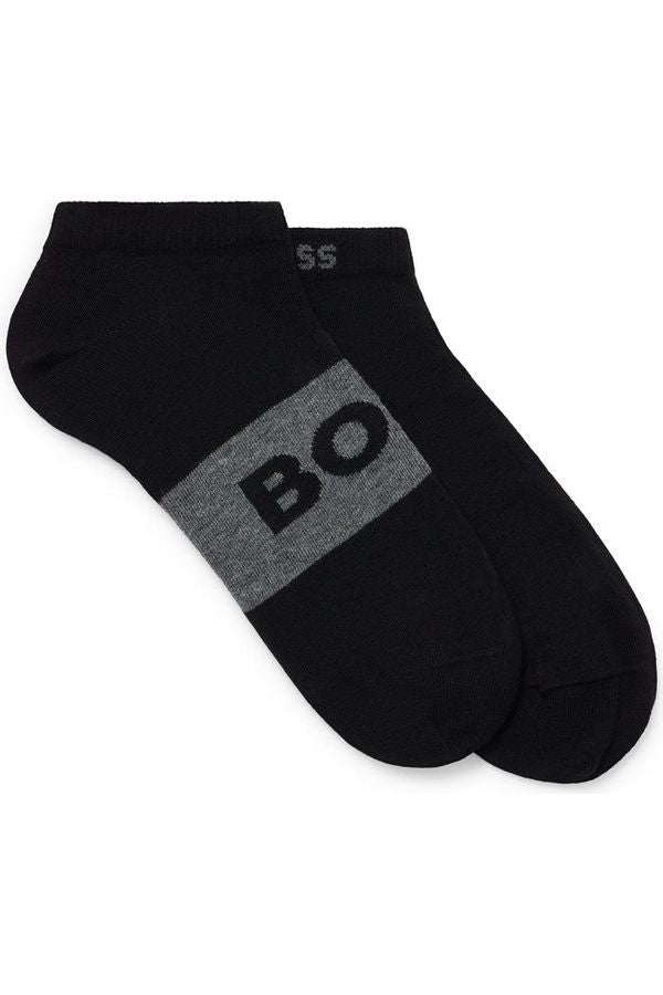 Dos pares de calcetines BOSS deportivos. Estos calcetines cortos super suaves, ideales para llevar con deportivas, se han elaborado en hilos con alto contenido de algodón mezclado con elástico. Los dos pares vienen adornados con detalles exclusivos de la marca BOSS.