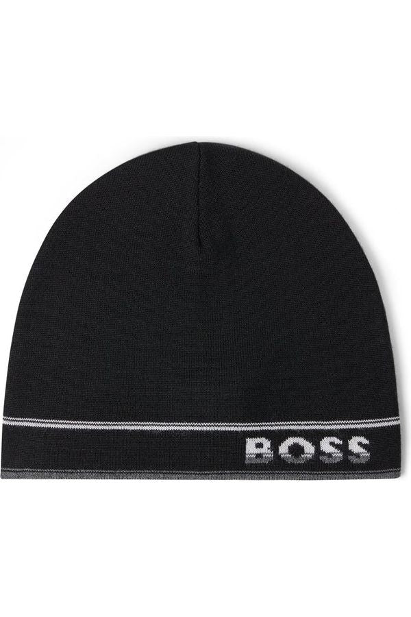 Un gorro de punto BOSS con un aire moderno. Este gorro de punto está tejido en hilos supersuaves mezclados con lana para resultar más cómodo. El diseño se completa con rayas deportivas y un logo BOSS. Combínelo con la bufanda a juego para lucir un conjunto impecable en los meses de frío.