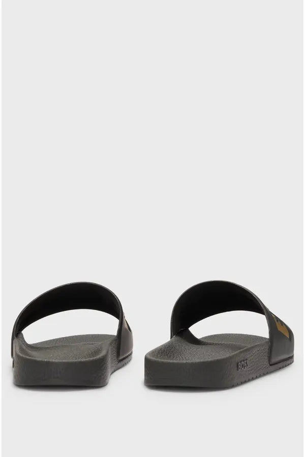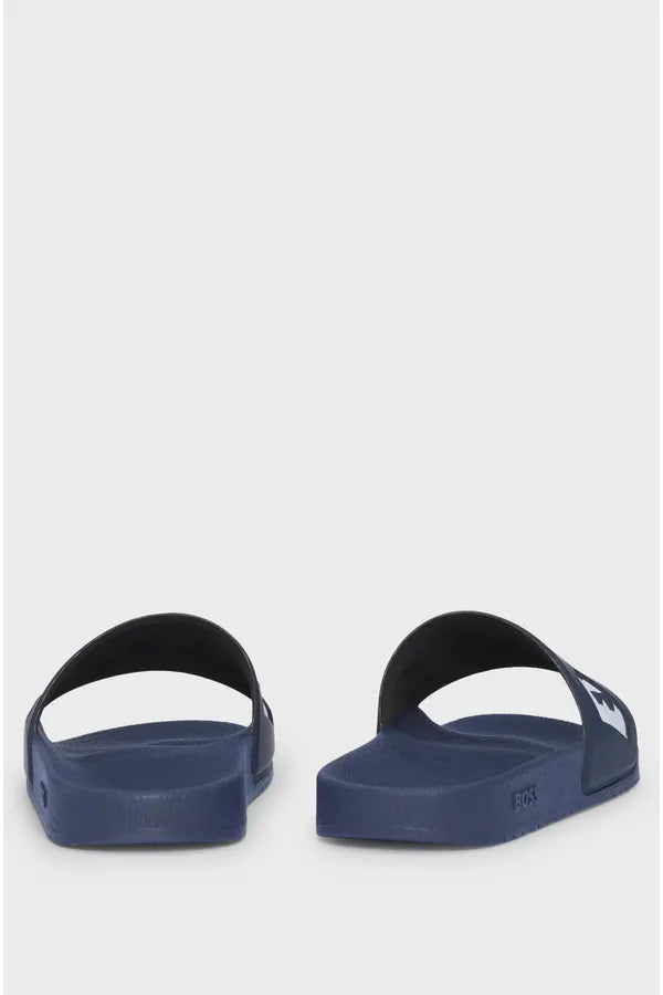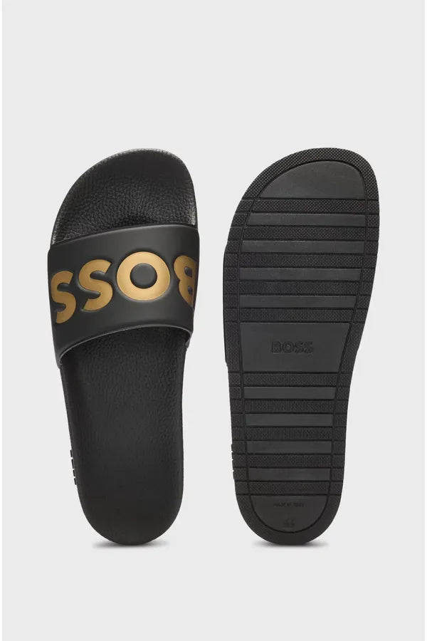 Unas características chanclas BOSS Hombre hechas en Italia. Este modelo veraniego elaborado en materiales ligeros tiene un gran logo BOSS en el empeine.