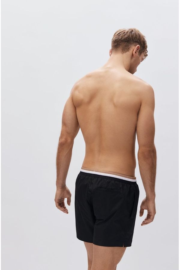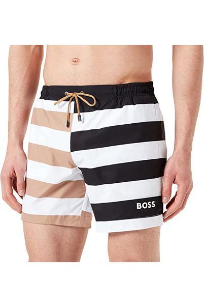 Un bañador deportivo BOSS de tejido antidesgarros. Rematado con una cintura elástica con las rayas distintivas de la marca, este bañador con forro integral tiene un logo BOSS en contraste estampado en la pernera izquierda. Para aportar más distinción, el cordón de la cintura tiene detalles de la marca en los extremos.