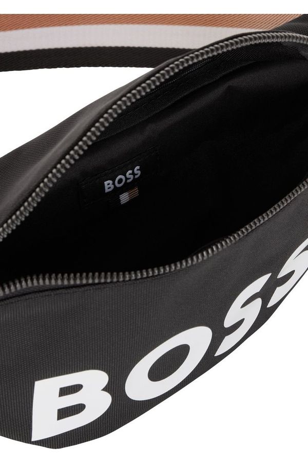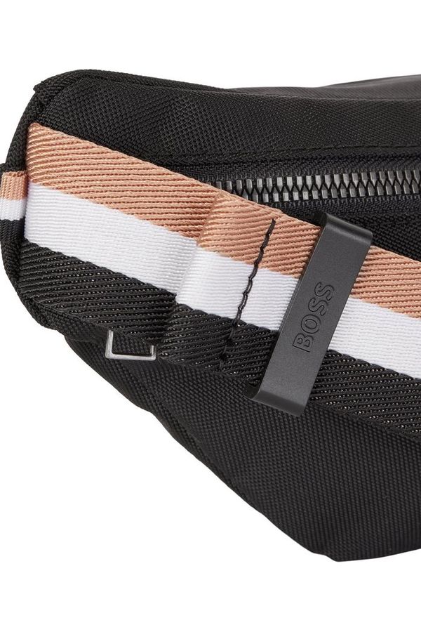 Una riñonera ligera BOSS con cinturón de cincha ajustable. Esta riñonera tejida con estructura fina incluye un logo BOSS estampado y un bolsillo adicional con cremallera en la parte trasera. En nuestros productos RESPONSIBLE siempre utilizamos como mínimo un 60 % de materias primas sostenibles. Este accesorio se ha fabricado con un mínimo del 60 % de poliamida reciclada certificada. Utilizamos poliamida reciclada porque queremos ahorrar recursos aprovechando materiales plásticos ya existentes. El nylon reciclado se fabrica normalmente con hilado de desecho industrial o restos de tejidos, pero también puede provenir de redes de pesca industrial posconsumo. Solo utilizamos materias primas con una cadena de custodia certificada para garantizar el uso de poliamida reciclada certificada.