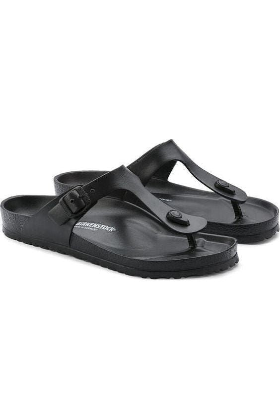 El modelo Gizeh de BIRKENSTOCK es un auténtico clásico. Inspirado en la sandalia de corcho, este modelo está hecho con material EVA, muy ligero y flexible. El material plástico EVA es de alta calidad, no tiene olor ni sustancias contaminantes y reúne muchas características positivas: es muy ligero, de alta elasticidad, amortigua los golpes, es respetuoso con la piel y ofrece el confort habitual de BIRKENSTOCK.