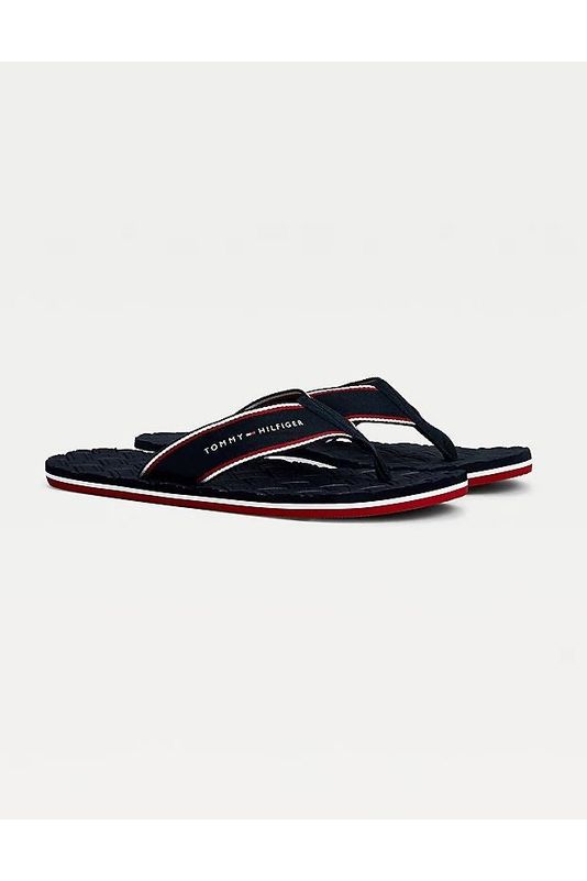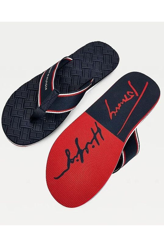 Estas chanclas presentan tiras de tejido trenzado y lucen un llamativo diseño entrelazado de logos de Tommy Hilfiger en relieve en la plantilla.