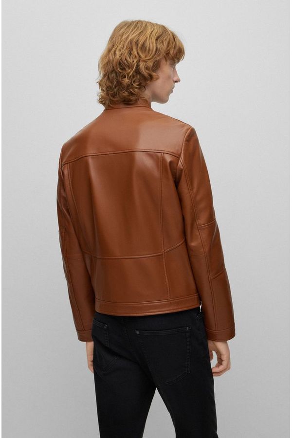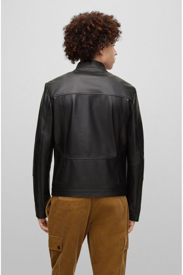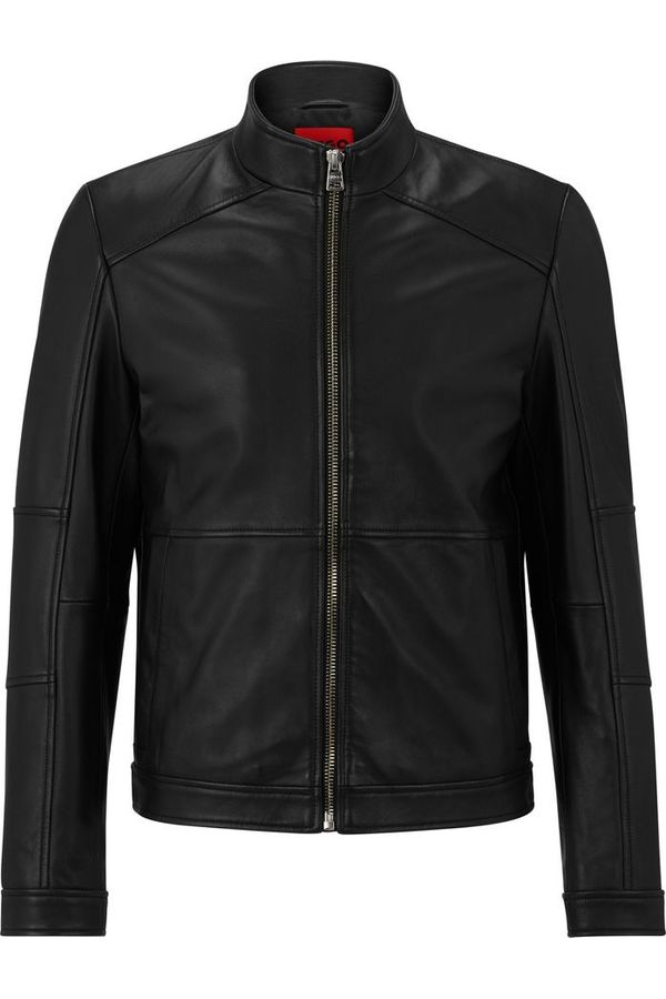 Una cazadora de piel HUGO Hombre con corte especialmente ajustado y diseño atrevido. Esta cazadora biker con cuello alto y bolsillos laterales está elaborada en piel de napa con líneas de corte dinámicas. Nuestros artículos de la línea RESPONSIBLE garantizan un uso mínimo del 60 % de materias primas sostenibles. Este artículo forma parte de nuestra iniciativa Less Water y se ha fabricado con un consumo menor de agua gracias a la selección de materias primas y tintes especiales. Nuestros artículos de piel Less Water se confeccionan en tenerías escogidas que disponen de sistemas excelentes para el tratamiento de aguas residuales y permiten reciclar un gran volumen de agua. Además de lo anterior, las tenerías de nuestra línea RESPONSIBLE cuentan con la certificación del Leather Working Group (LWG). En todos los productos de nuestra iniciativa Less Water hemos seleccionado centros de producción y plantas de tintura que cuentan con sistemas de alta calidad para el reciclaje de agua.