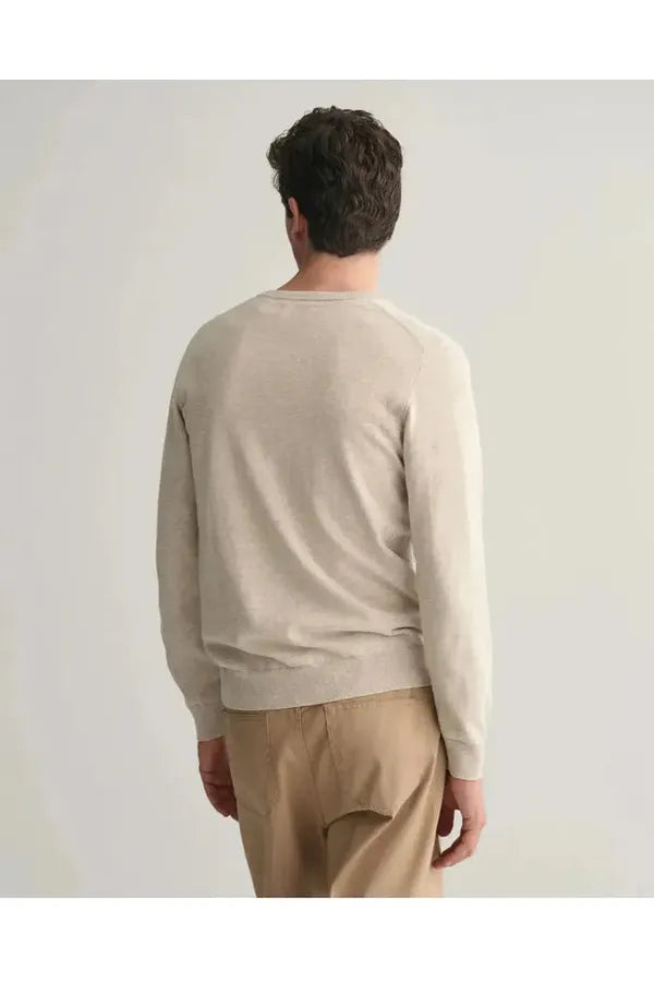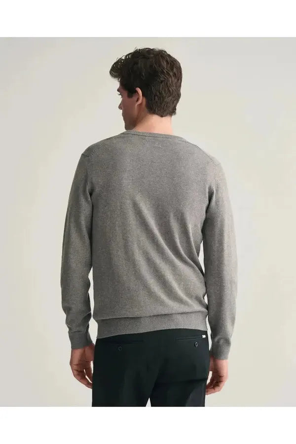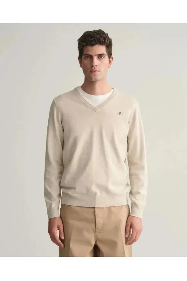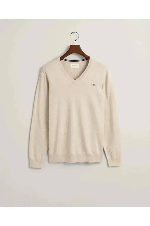 Este jersey de cuello de pico, confeccionado en algodón con corte normal, presenta la insignia GANT bordada en el pecho.