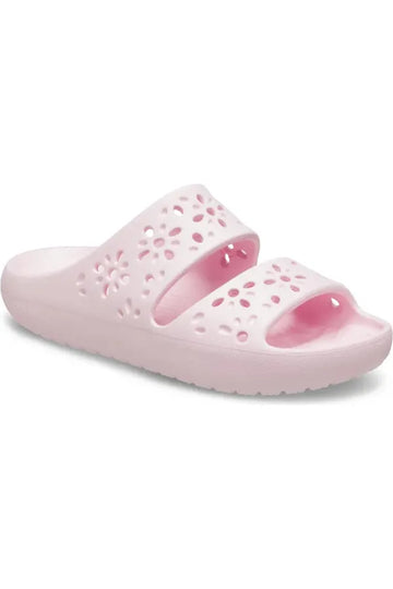 ¡Hemos refinado nuestra sandalia clásica con un toque fresco y femenino! Esta nueva evolución de nuestra sandalia presenta detalles de inspiración floral para un look divertido y alegre. Aún puedes disfrutar de la construcción liviana y totalmente contorneada y la comodidad característica, además puedes agregar adornos Jibbitz™ para lo último en personalización. ¡Es la sandalia clásica que siempre te ha gustado, ahora con un divertido toque floral!