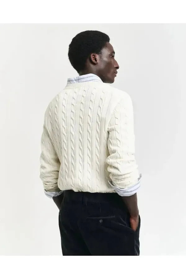 Este suave jersey, con un diseño integral de punto de ochos en algodón, presenta corte normal y cuello redondo clásico. Se trata de un básico «preppy» con nuestra emblemática insignia GANT Archive Shield bordada en el pecho y terminaciones acanaladas en el cuello, el bajo y los puños.