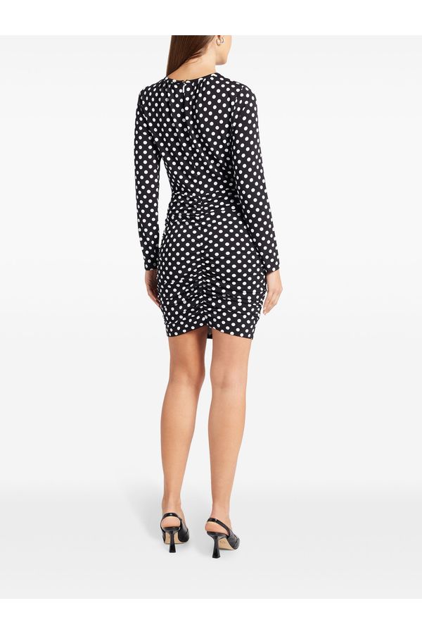 Este moderno minivestido de inspiración vintage se ha confeccionado en suave punto mate elástico con estampado de lunares y favorecedores detalles fruncidos. Póntelo con zapatos de tacón para crear un look sofisticado.