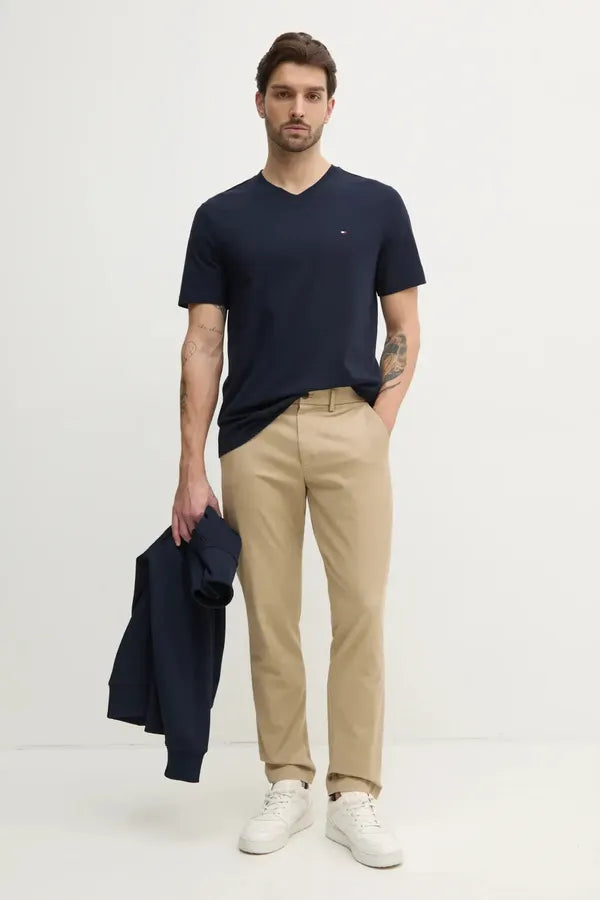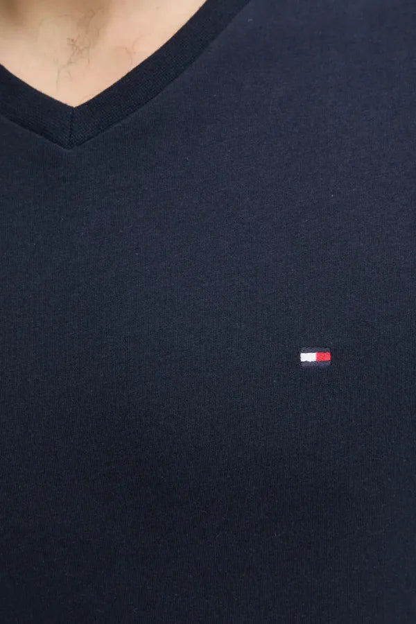 Esta camiseta de cuello de pico, confeccionada en puro algodón, luce un logo de Tommy Hilfiger bordado y es ideal para completar looks clásicos.