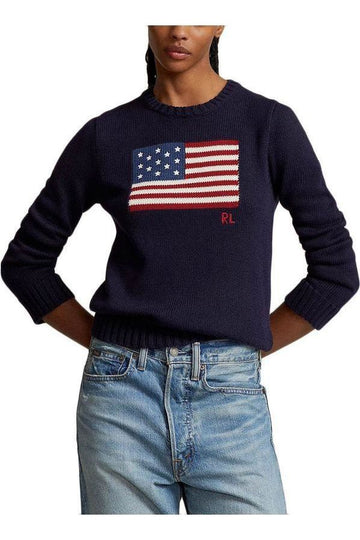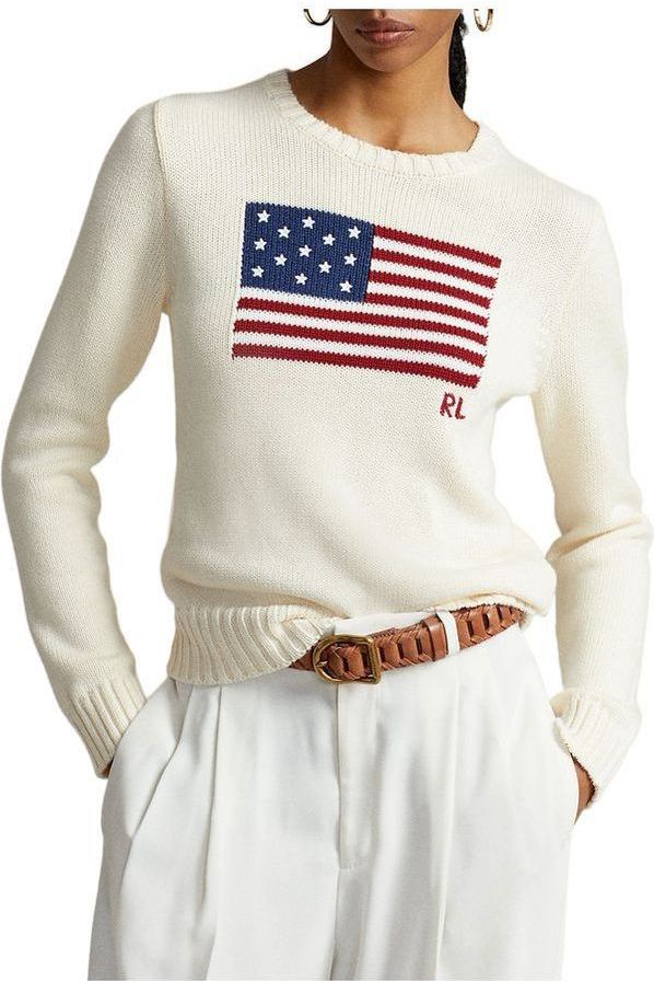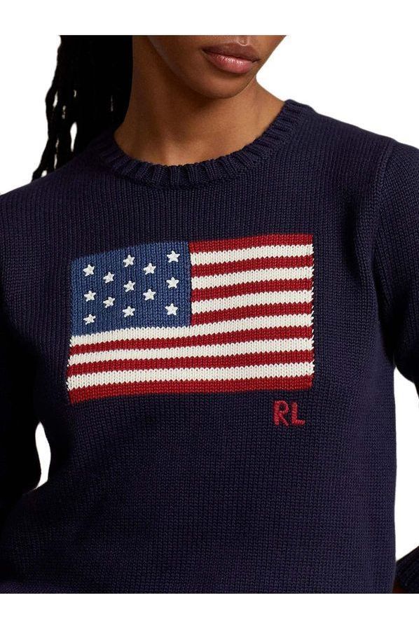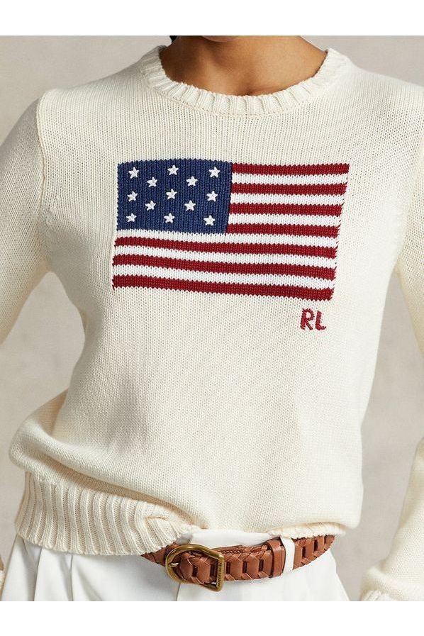 - Bandera estadounidense tejida en intarsia en el centro del frente