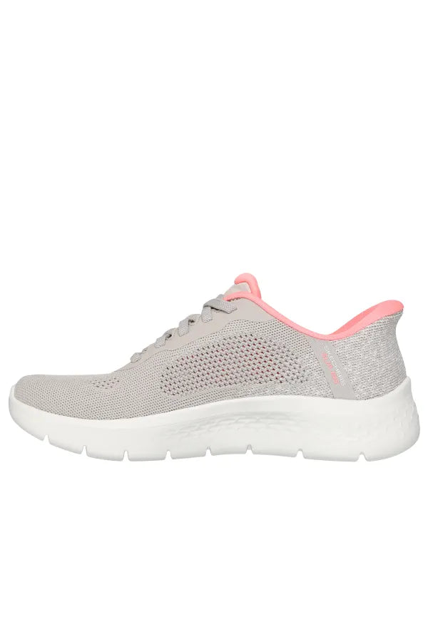 Da cada paso con el estilo y la comodidad de las Skechers Hands Free Slip-ins® GO WALK Flex™ - Safiya. Diseñado con nuestra tecnología Heel Pillow™, este modelo vegano y transpirable presenta una parte superior de knit moteado Stretch Fit® con cordones elásticos fijos, una plantilla Skechers Memory Foam™ y amortiguación ligera ULTRA GO®.