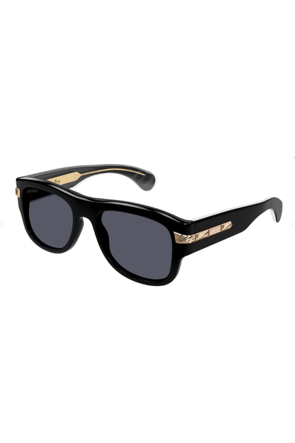 Este modelo GG1517S, que se inspira en los detalles arquitectónicos de Manhattan de los años 30, se caracteriza por su diseño de acetato hecho a mano y detalle de diamante en la placa metálica aplicada en la varilla. Diseño cuadrado redondeado masculino con parte superior plana. Logotipo con letras grabado a láser en el detalle metálico decorativo de las varillas. Paleta de colores masculina con habanas exclusivos en contraste con la placa de metal grabada brillante.