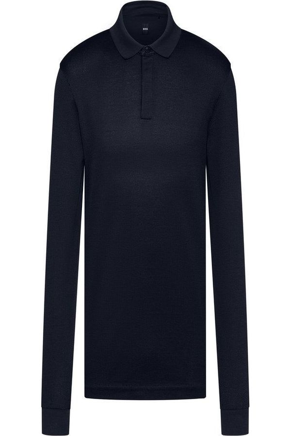 Un polo versátil de BOSS, diseñado con mangas largas. Este polo tiene un corte regular en un tejido de algodón suave con una estructura de dos tonos. Una tapeta oculta y una bandera con el logotipo añaden los toques finales.