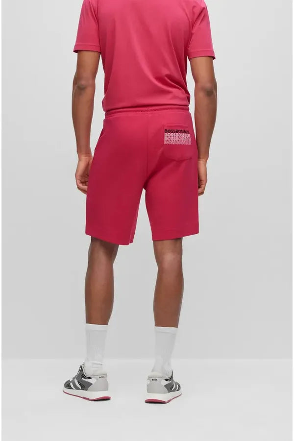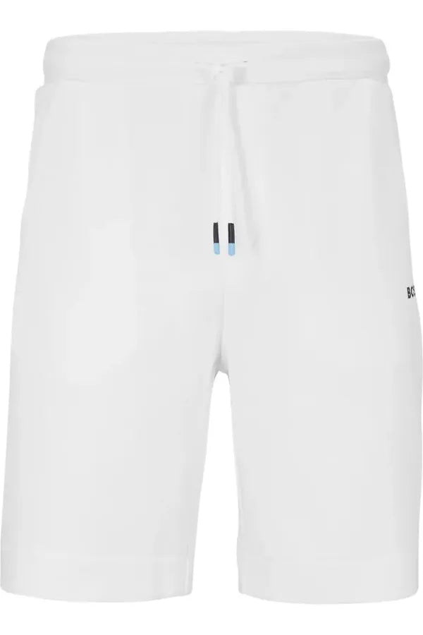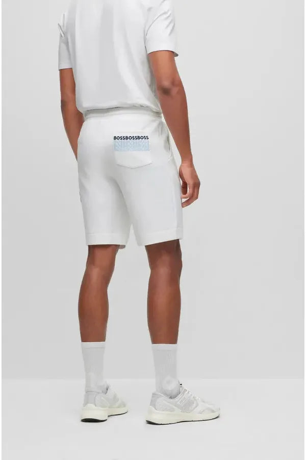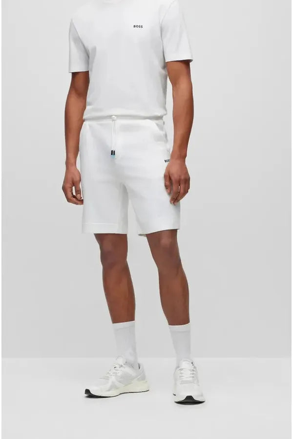 Unos shorts regular fit en mezcla de algodón BOSS Hombre, bordados con detalles de la marca multicolor y con cabos de cordón a juego con la cintura.