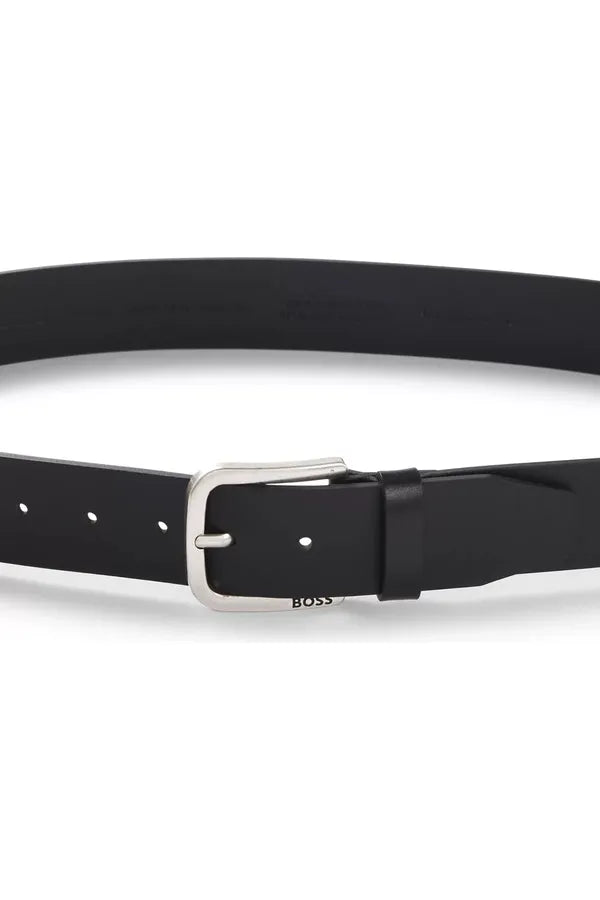 Un cinturón de 4 cm BOSS de piel de bisonte con hebilla de efecto vintage y herrajes plateados con logo grabado. Para un ajuste impecable, recomendamos pedir un cinturón de una talla superior a la de su cintura.