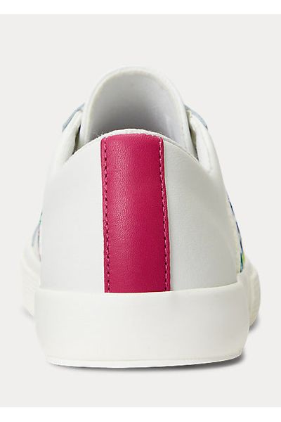 La deportiva Janson III, elaborada con suave piel de napa, se completa con rayas laterales tejidas que presentan el colorido motivo "LRL" de Lauren. El modelo, diseñado con una estructura vulcanizada para mayor resistencia, presenta una exclusiva plantilla de espuma acolchada para distribuir el peso de forma uniforme y proporcionar la máxima comodidad a cada paso.