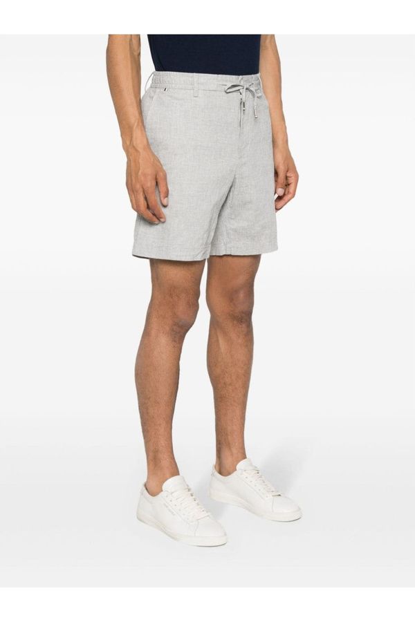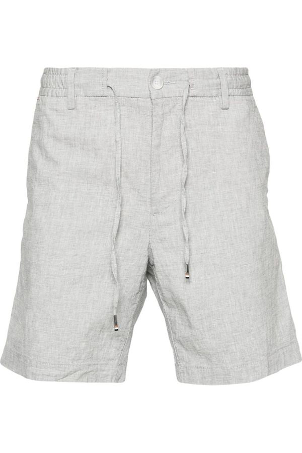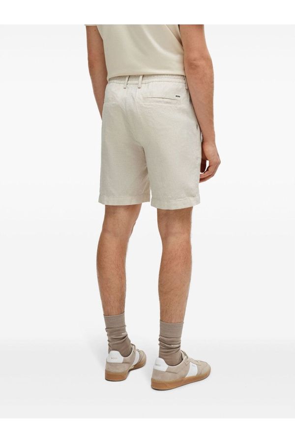 Elegantes shorts regular fit con cintura con cordón BOSS Hombre, confeccionados en tejido jaspeado de algodón mezclado con lino y elástico.