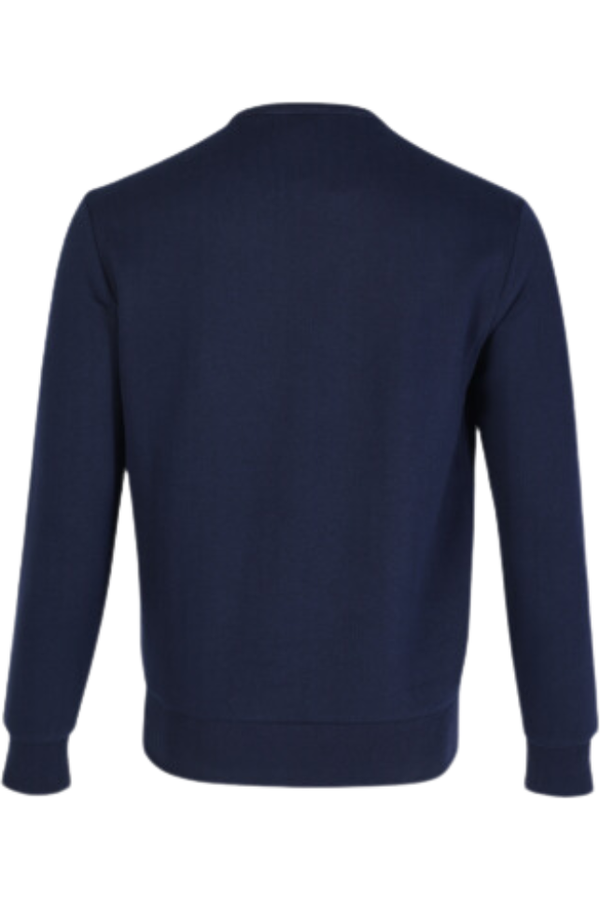 Este jersey tiene cuello redondo y mangas largas con puños de canalé. Polo bordado en la parte delantera. El bajo está rematado con una estructura de canalé que le da un toque elegante.
