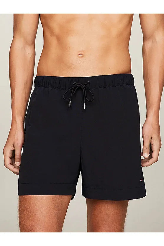 Este clásico bañador de medio largo está confeccionado en nailon y presenta una cómoda cintura con cordón.