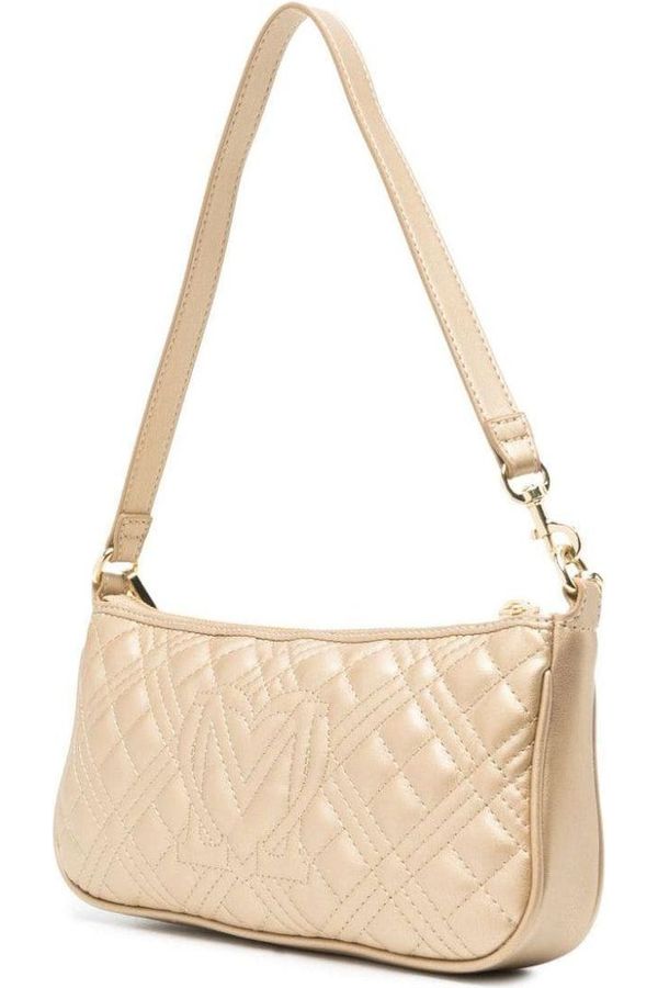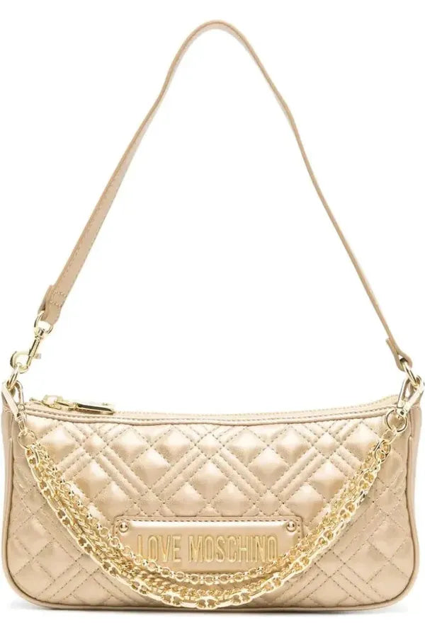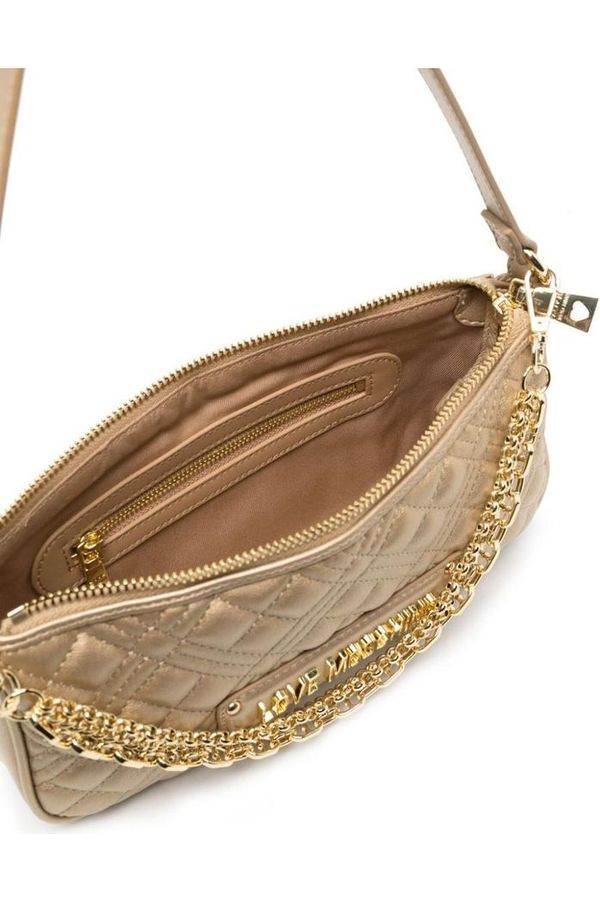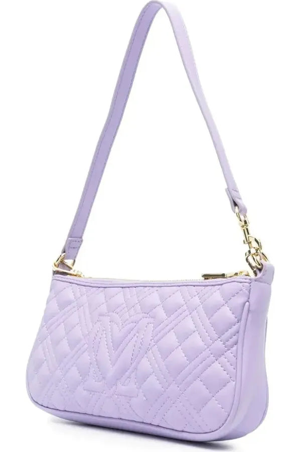 Bolso de hombro acolchado con rombos de LOVE MOSCHINO con lila lila, piel sintética, detalles en tono dorado, letras del logo en tono dorado, detalle de acolchado con rombos, correa de hombro con eslabones, correa simple para el hombro, cierre con cremallera en la parte de arriba, compartimento principal y cremallera interna -bolsillo de sujeción.