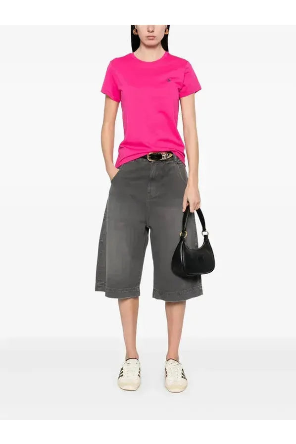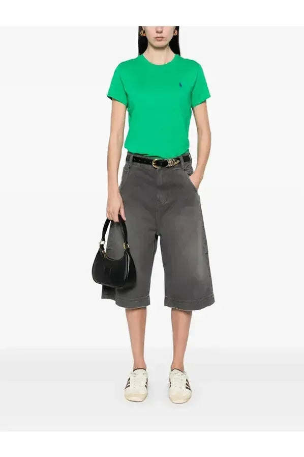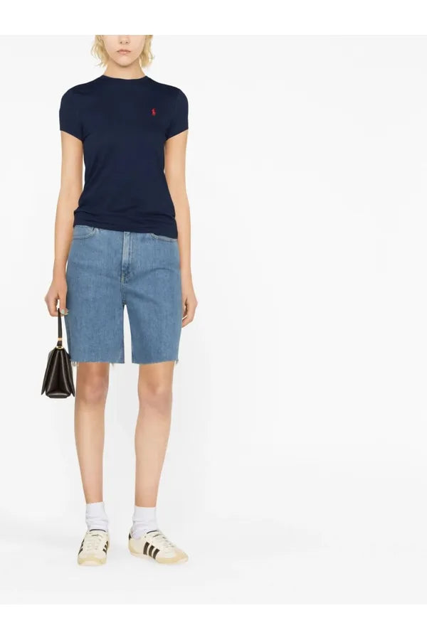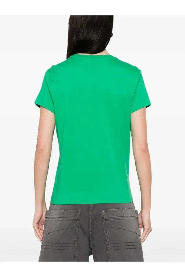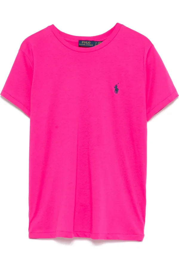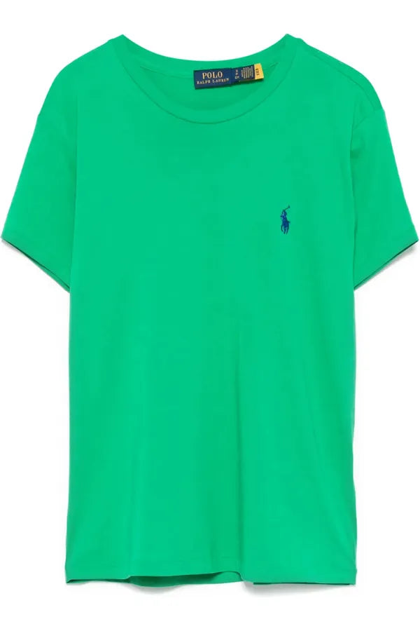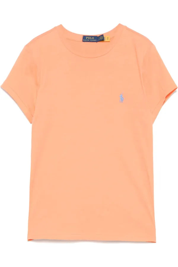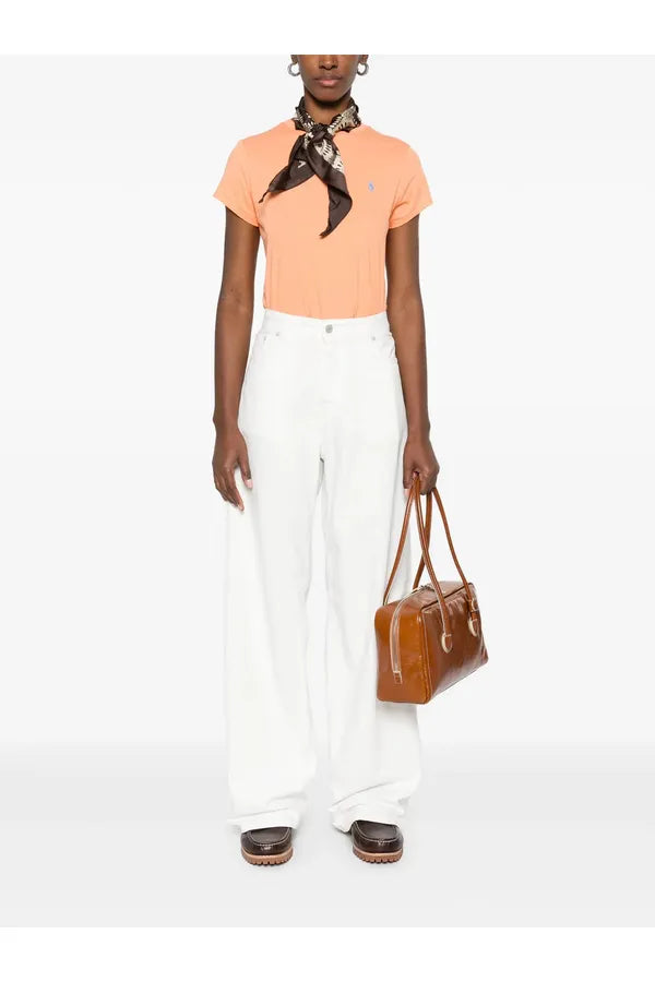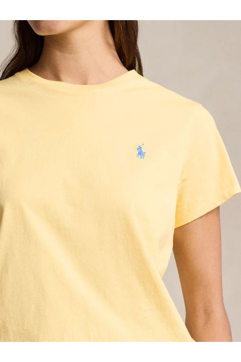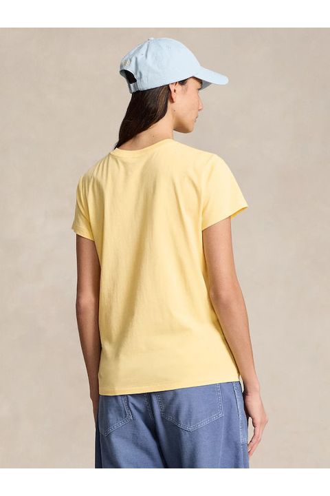 Esta camiseta de algodón en punto jersey con cuello redondo, de corte recto, se ha sometido a un lavado para añadir suavidad y está decorada con el caballo marca de la casa bordado.