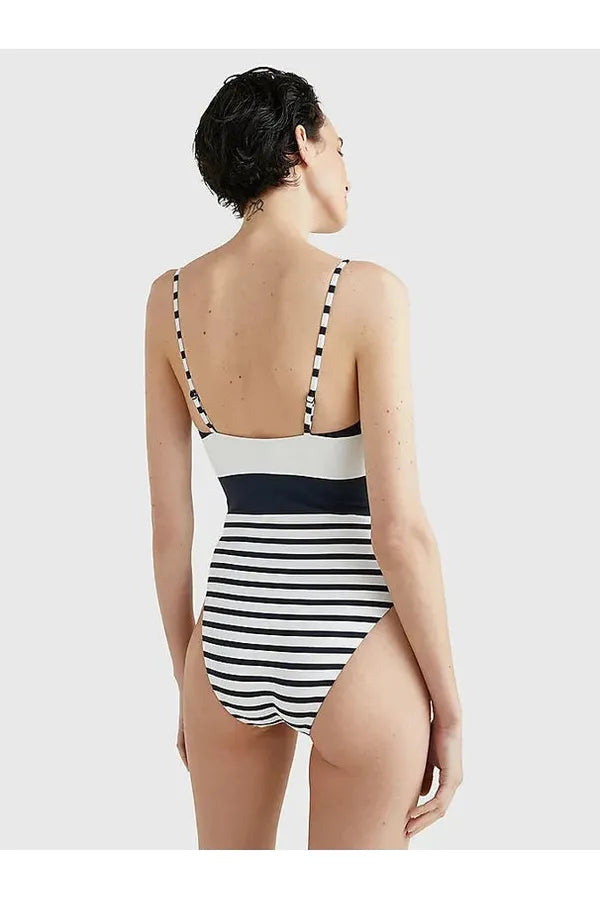 Este traje de baño pronto se convertirá en un modelo clásico con su estampado integral de rayas marineras y de estilo rugby.