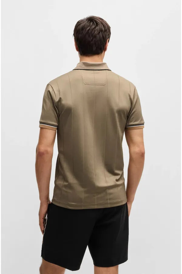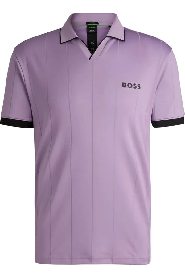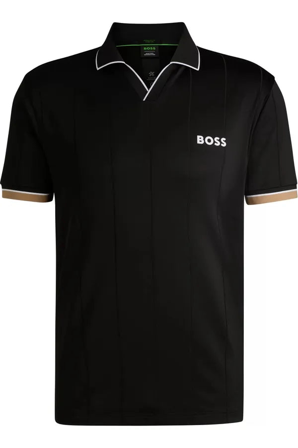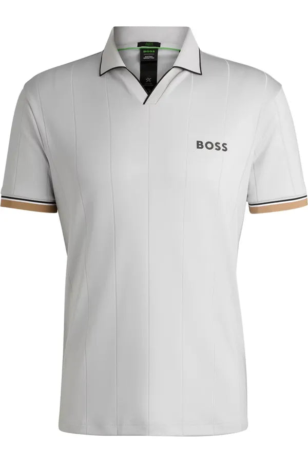 Un polo BOSS Hombre de punto transpirable con elástico y control de olores que garantiza un tacto fresco y una libertad de movimiento sin complicaciones. Slim fit. Esta prenda forma parte de la dinámica colección cápsula BOSS x Matteo Berrettini, creada en colaboración con el tenista profesional italiano.