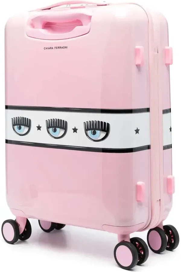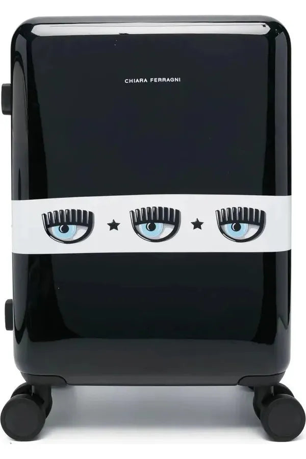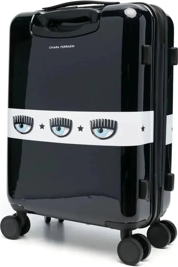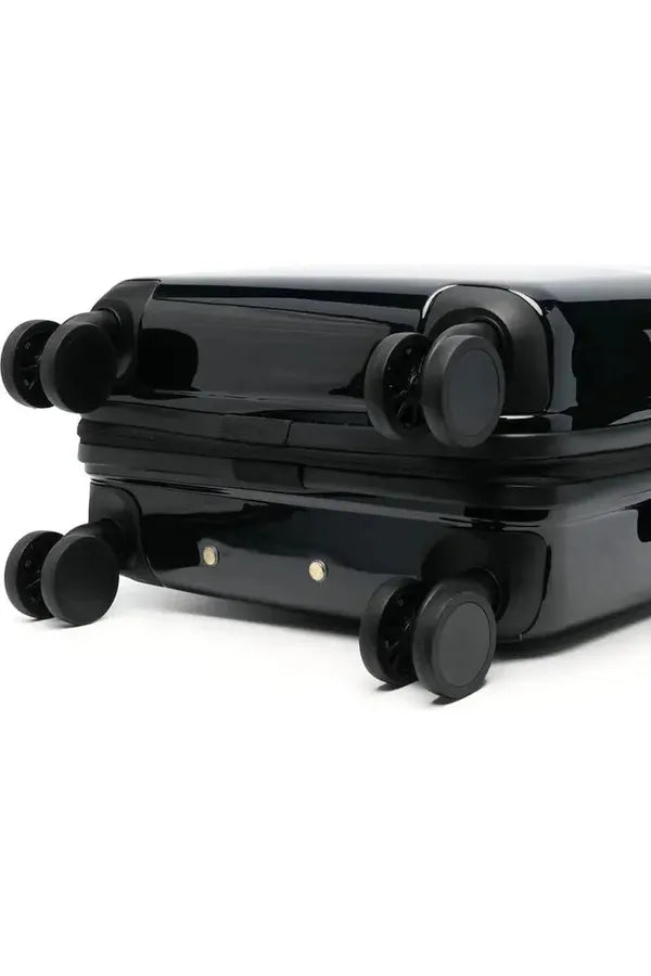 Logo estampado en la parte delantera, cierre con código, asa retráctil, asa plana en la parte superior, cuatro ruedas, cierre en el contorno, compartimento principal, forro con estampado del logo, bolsillos internos con cierre y altura: 14cm.