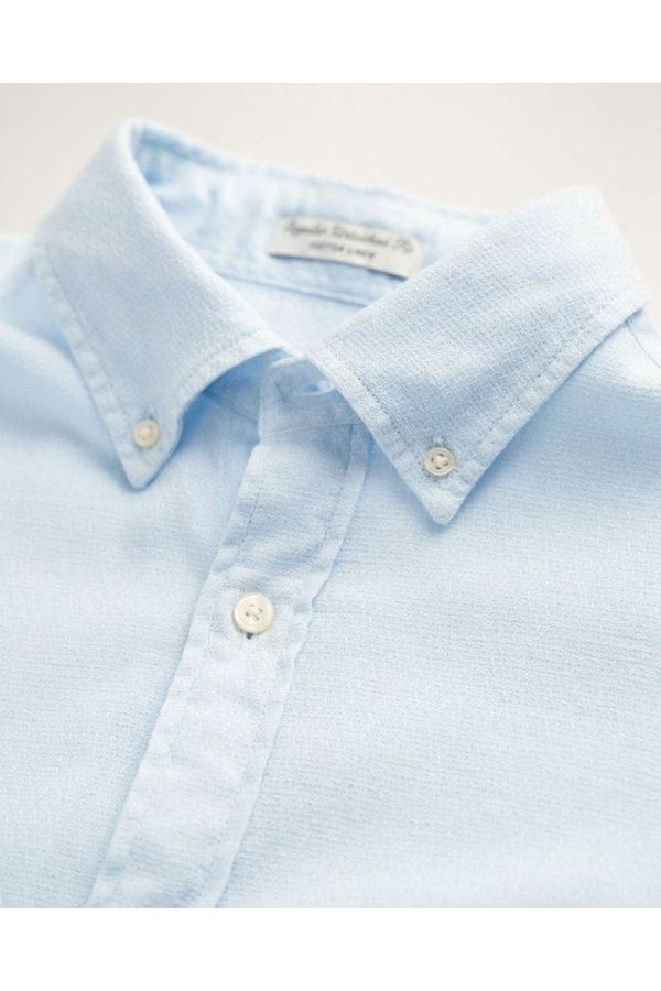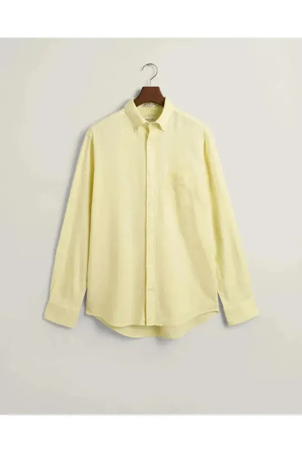 Esta camisa, confeccionada en una cómoda mezcla de lino y algodón, presenta un corte normal para llevar por fuera del pantalón y cuello abotonado clásico. Cuenta con bajo curvado, el logotipo GANT bordado en el bolsillo del pecho y fuelle con nuestra inconfundible trabilla en la espalda.