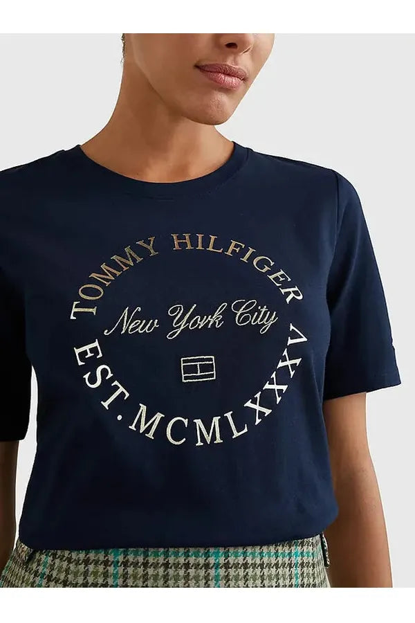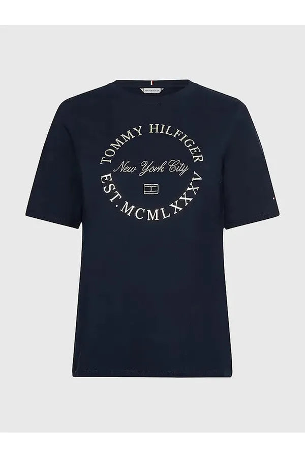 Esta camiseta clásica en punto de algodón orgánico luce un logo estampado y bordado en el pecho con un vistoso acabado metalizado.