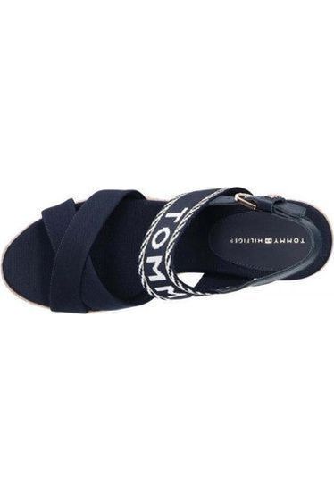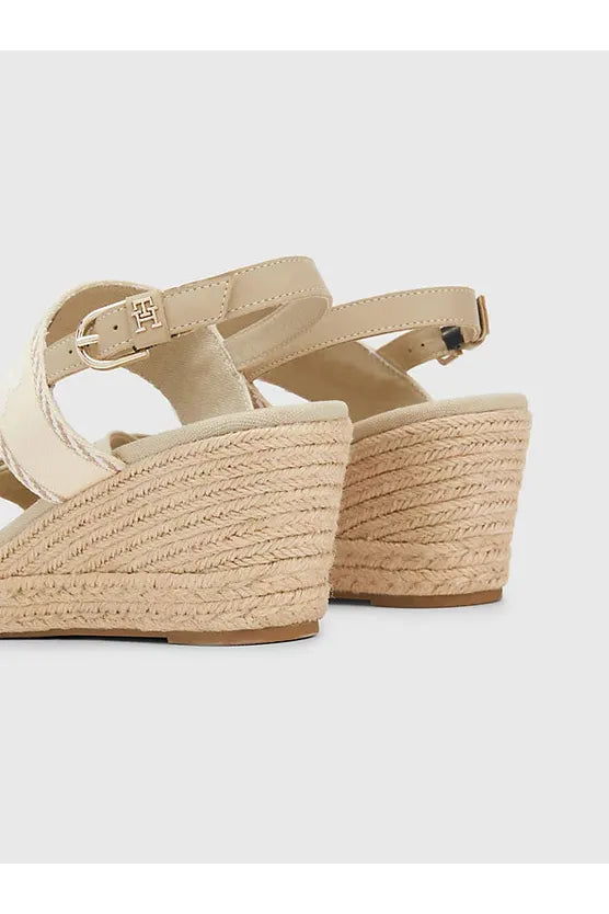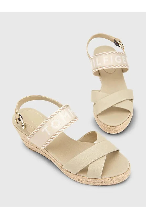 Estas alpargatas clásicas presentan una cuña media revestida de yute y una tira de tejido trenzado con la inscripción de Tommy Hilfiger.